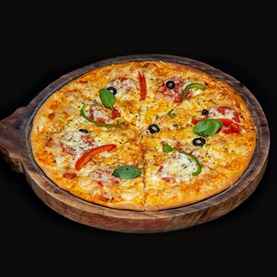 Classic tomato sauce, mozzerella cheese, chicken, sausage salami and oregano